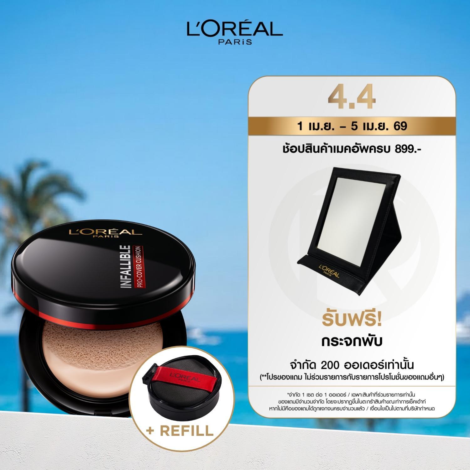 [เซตสุดคุ้ม คุชชั่น+รีฟิล] ลอรีอัล ปารีส อินฟอลลิเบิล โปร คัฟเวอร์ คุชชั่น+ รีฟิล ปกปิด ติดทน ฟินิชซอฟต์แมท L'Oréal Paris Infallible Pro-Cover Cushion 14g